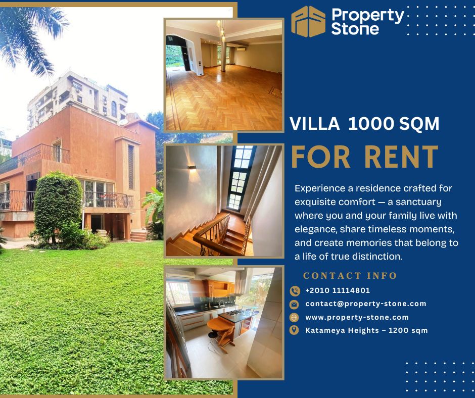 فيلا فاخرة 1000 متر للإيجار في دجلة المعادي – تشطيب سوبر ديلوكس ولوكيشن مميز!