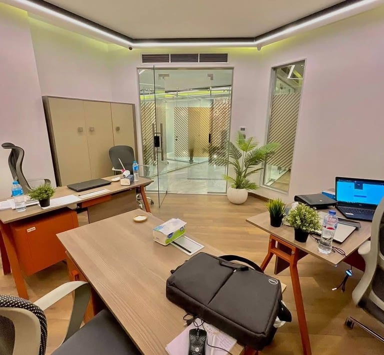 فرصة مميزة لاستئجار مكتب إداري فاخر ومفروش بالكامل داخل أحد أهم مباني الأعمال في منطقة القطامية. يتميز المكتب بتشطيبات راقية وتقنيات حديثة تدعم بيئة عمل احترافية ومنتجة.