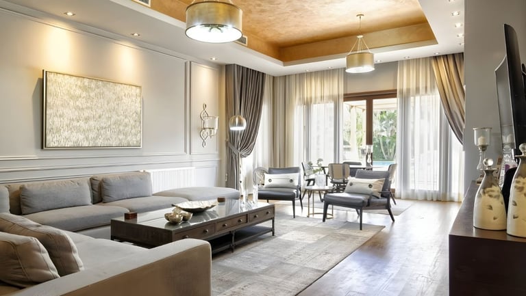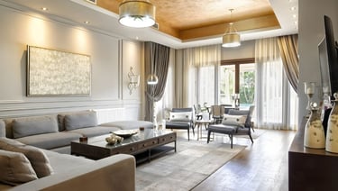 • غرفة معيشة كبيرة بإطلالة مميزة